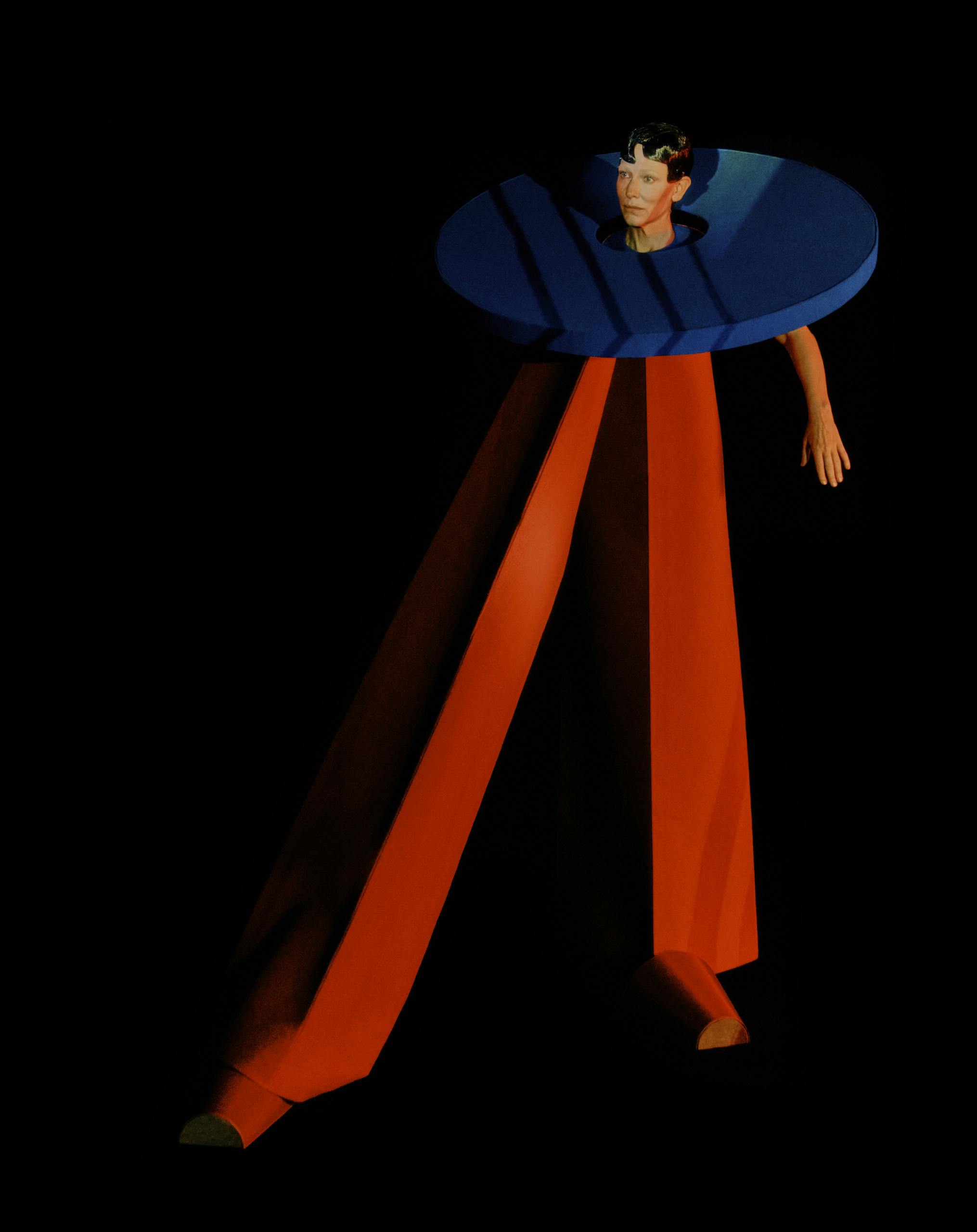 “I’d made a simple portrait of Cate before, and I knew from meeting her that there was this window,” explains Davison. “With certain people, you can tell they enjoy the process and are more excited by not being themselves in front of the camera.” Davison and the team did a lot of prep ahead of the shoot to ensure Blanchett would come along for the ride. “She saw very early drawings and moodboards,” he says. “We created a selection of outfits, which were more like objects for her to play with. She just inhabited the space while bringing her own ideas into the mix. It’s exciting when someone gives in to the idea and understands the process. Not all actors do, but Cate was really game.”