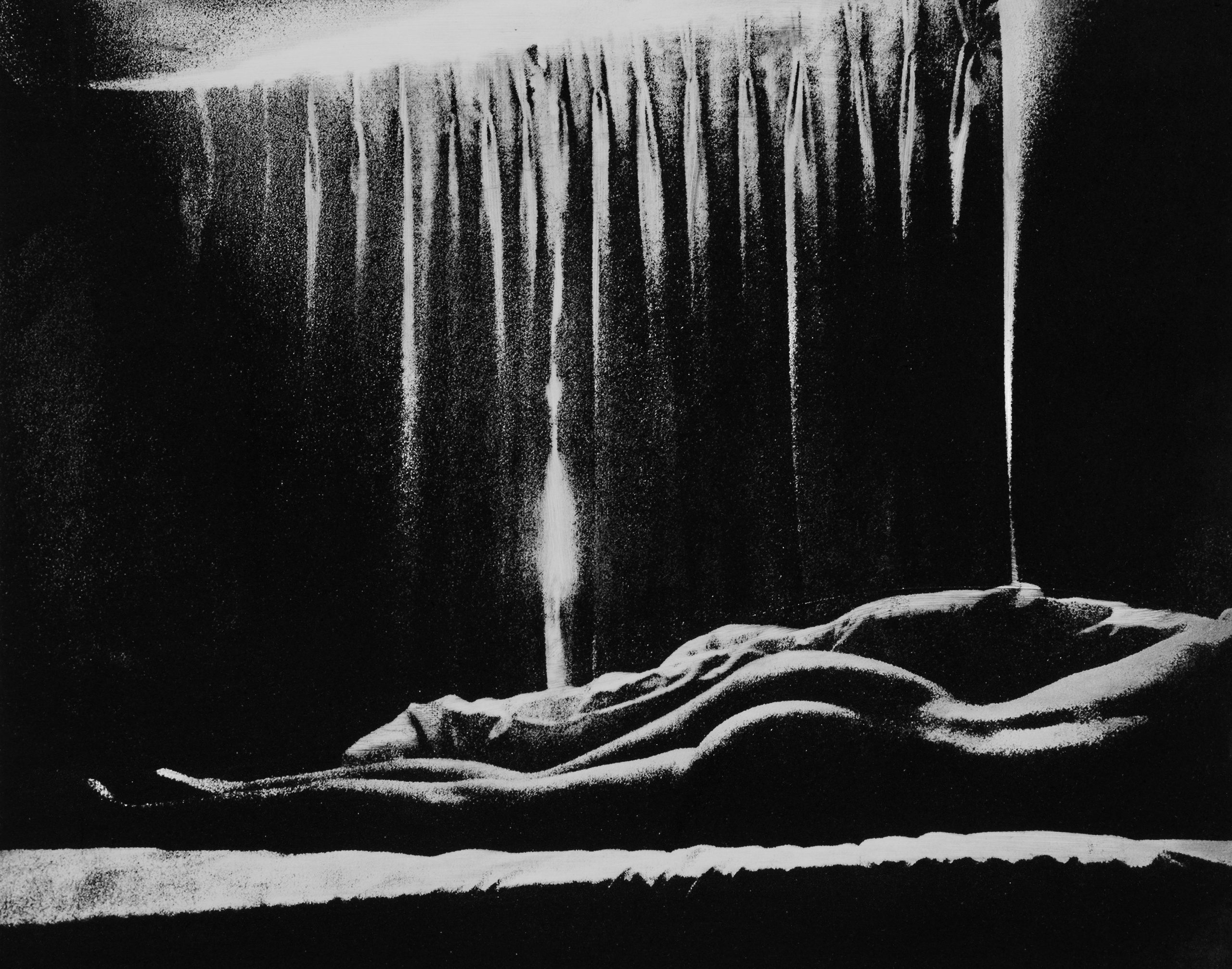 “I don’t like the darkroom,” he says. “But I love printmaking and etchings. The process is so tactile and shows so much detail and range of tone. Originally, Colin was going to print all the images, but I wanted to be physically involved. Also, Colin would do it perfectly every time. I was excited about this slightly uncontrollable method in my inexpert hands and getting those moments of randomness you can’t plan for. It’s another way of abstracting and shifting the image from what it originally was. I see it as the final evolution. I love that someone could find one of these prints in a hundred years and have no idea when it was made.”