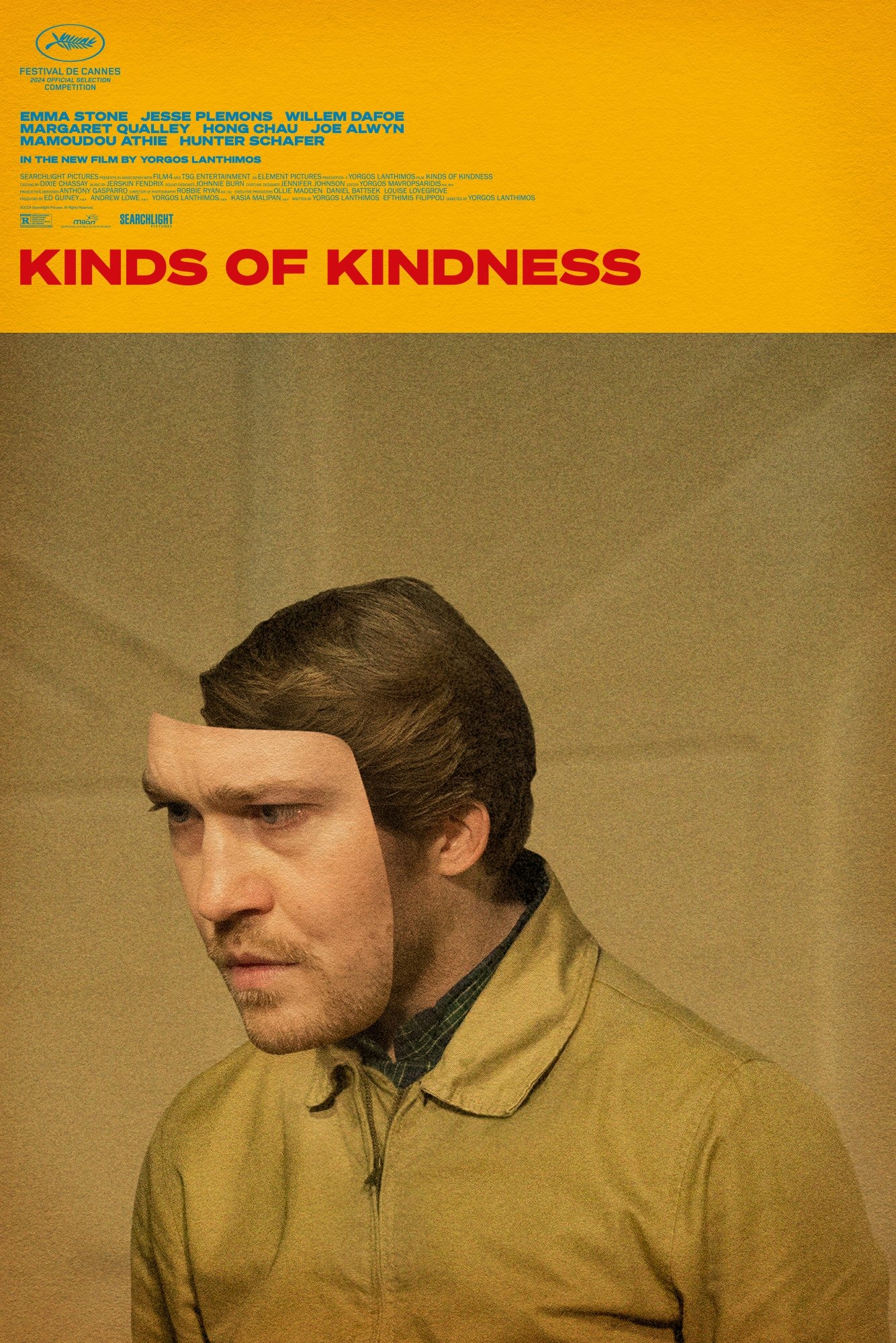 Dafoe also gets his own sheet in a series of character posters for Kinds of Kindness. Hot on the heels of the success of Poor Things, Yorgos Lanthimos has once again turned to the inimitable Vasilis Marmatakis to create a series of posters quite unlike anything else out there – distorting the film’s cast into a kind of surreal tedium.