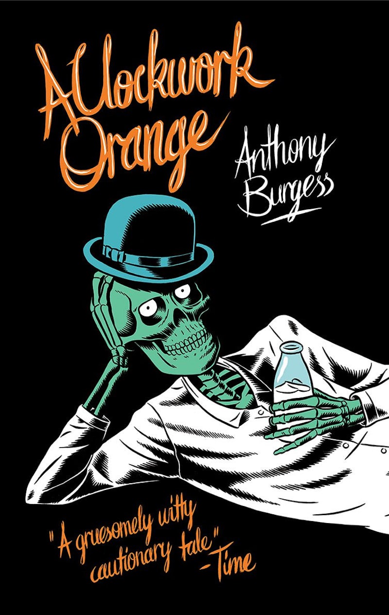 While Kubrick’s imagery may now dominate our vision of the novel (much to the displeasure of Burgess, who famously hated the movie version for its glorification of sex and violence), and the dystopian world of its 15-year-old narrator Alex and his gang of droogs, the numerous covers that have accompanied the book over the decades have also done much to cement the story in our collective conscious. Here’s a look at some of the book designs over the years, and how page and screen have influenced one another.
