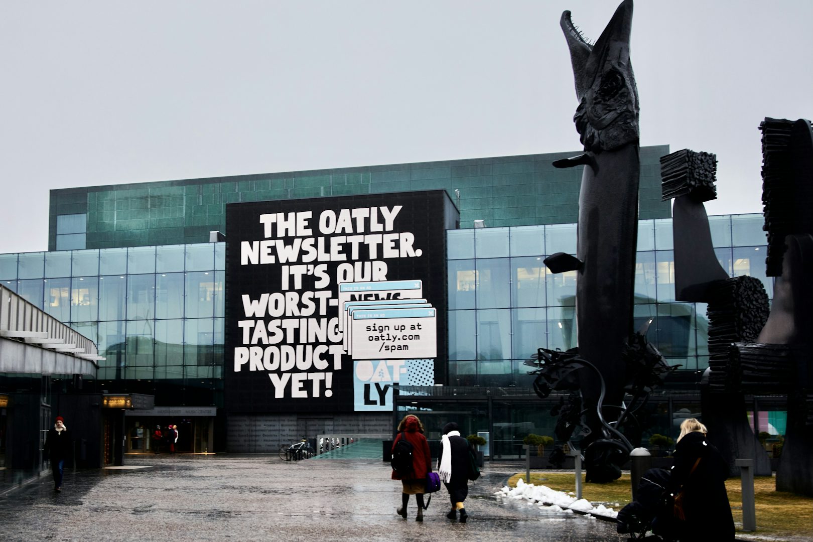 For example, at SAS, we researched, wrote, designed, and coded 167 different stories about the school so that we could turn each of our buses into unique storytellers. At Oatly, we created a global multimedia campaign promoting a newsletter about an oat milk.