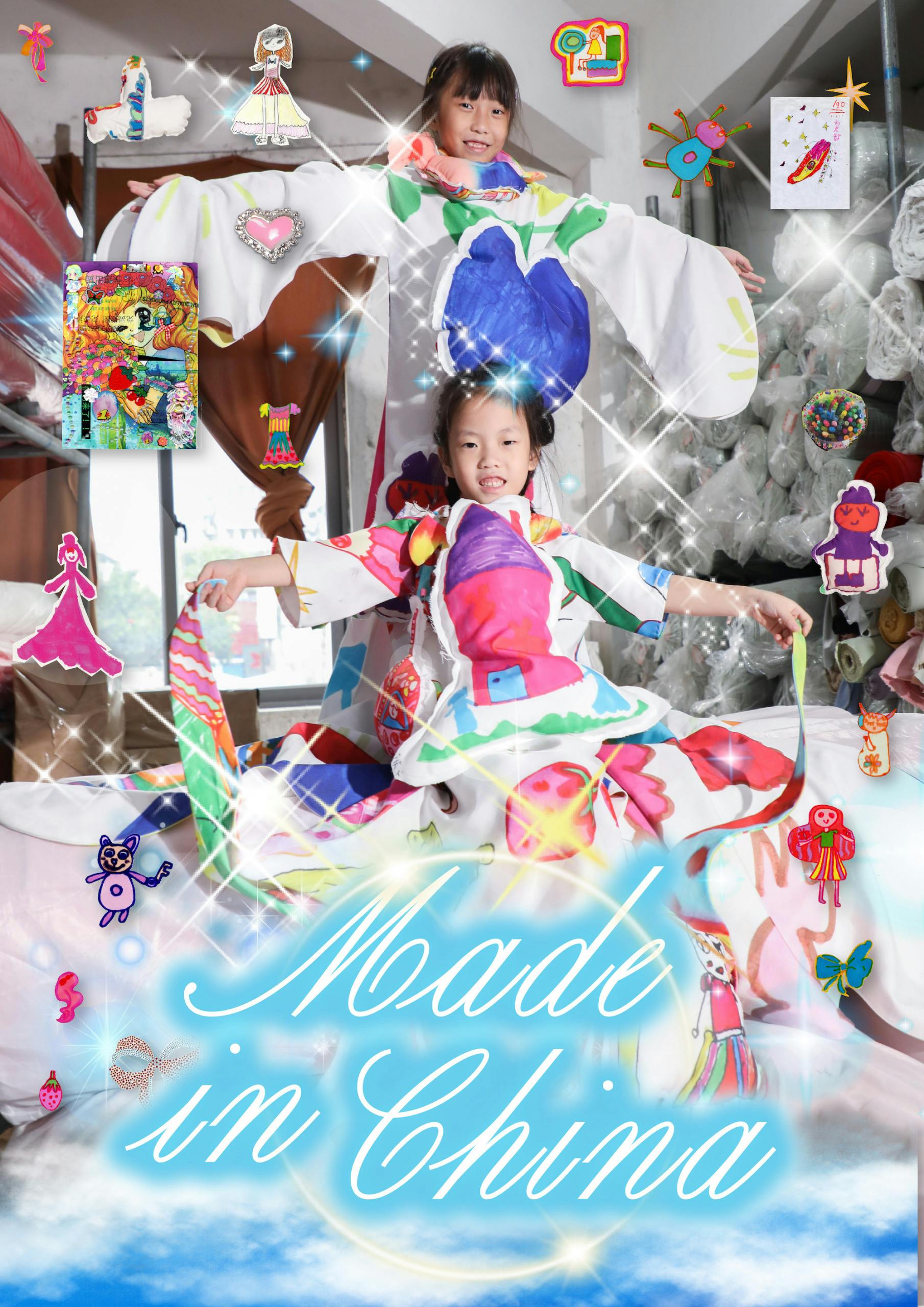Alongside taking on various freelance design projects back in China, Chan decided to start her own brand, and found herself spending a lot of time visiting a fabric printing factory in Guangdong. It was during her visits that Chan was struck with an idea for her ambitious Made in China project. She noticed the young daughters of the factory owner, Xinxin and Yu, were always there while their parents worked – something that’s not unusual in China, according to Chan.
