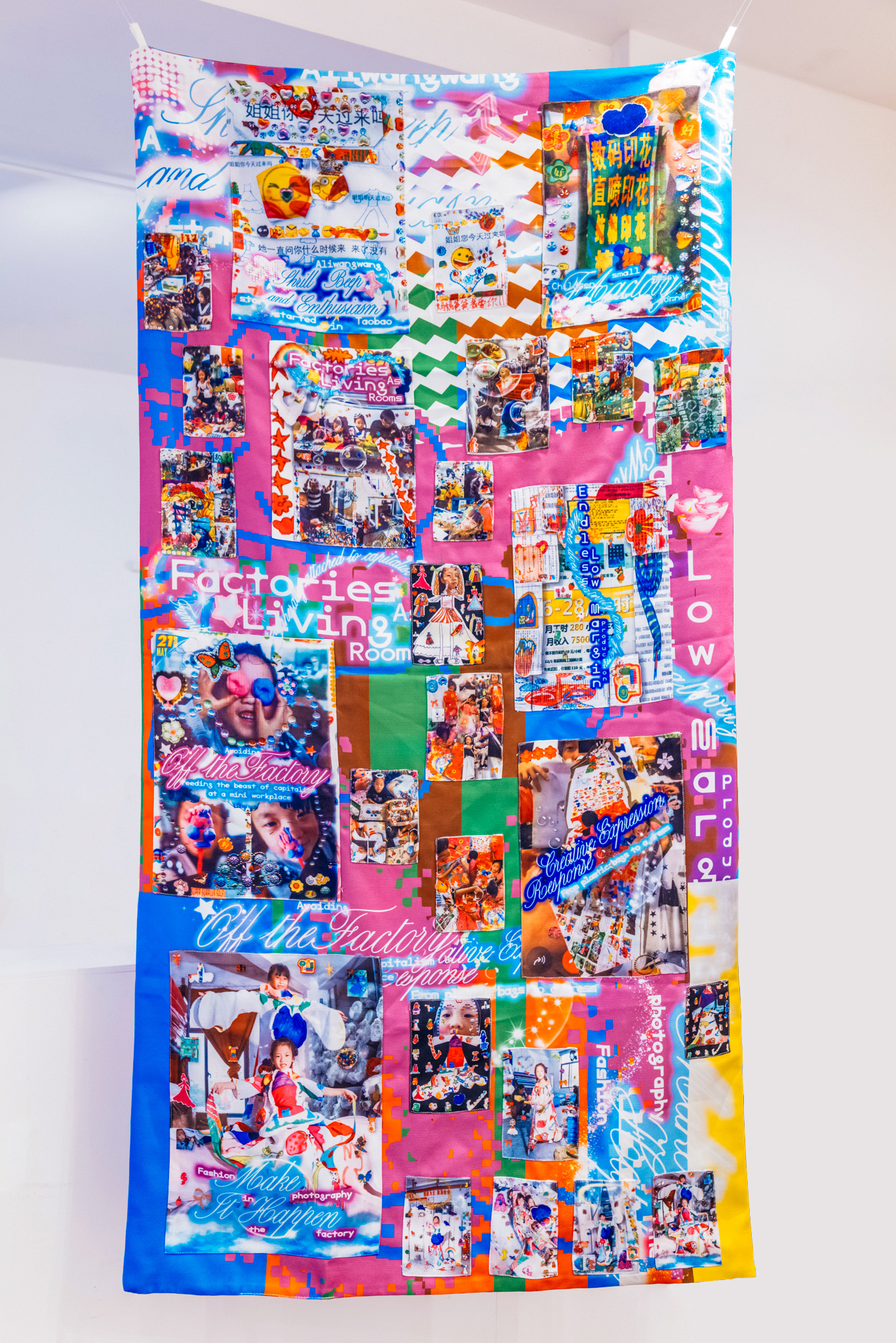 “The Chinese equivalent of UK poundshops have their own style so I wanted to use the right visual language to say what I wanted – the colourful, busy things are straight from that,” says Chan. “It’s also trying to describe the environment the children are living with, but I’m not trying to say ‘this is bad’, I just want to respond to people’s stereotype of ‘Made in China’. For these families, they’re not thinking about if it’s good or bad – it’s just what they’re living with, so I wanted to present it honestly.”