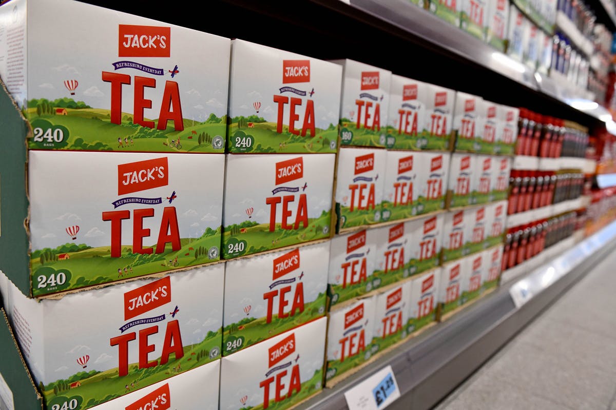 The colours are exactly the same as Tesco, except for a light blue that appears now and again, but their volume is off. Where Tesco has always used white as a confident bag background, these bags clash red against blue in a way that feels loud and unnecessary. The bold, jaunty logo particularly comes unstuck on the products themselves. For example, the tea packaging leaves no doubt as to who the boss is, it’s Britain, I mean, Jack’s.