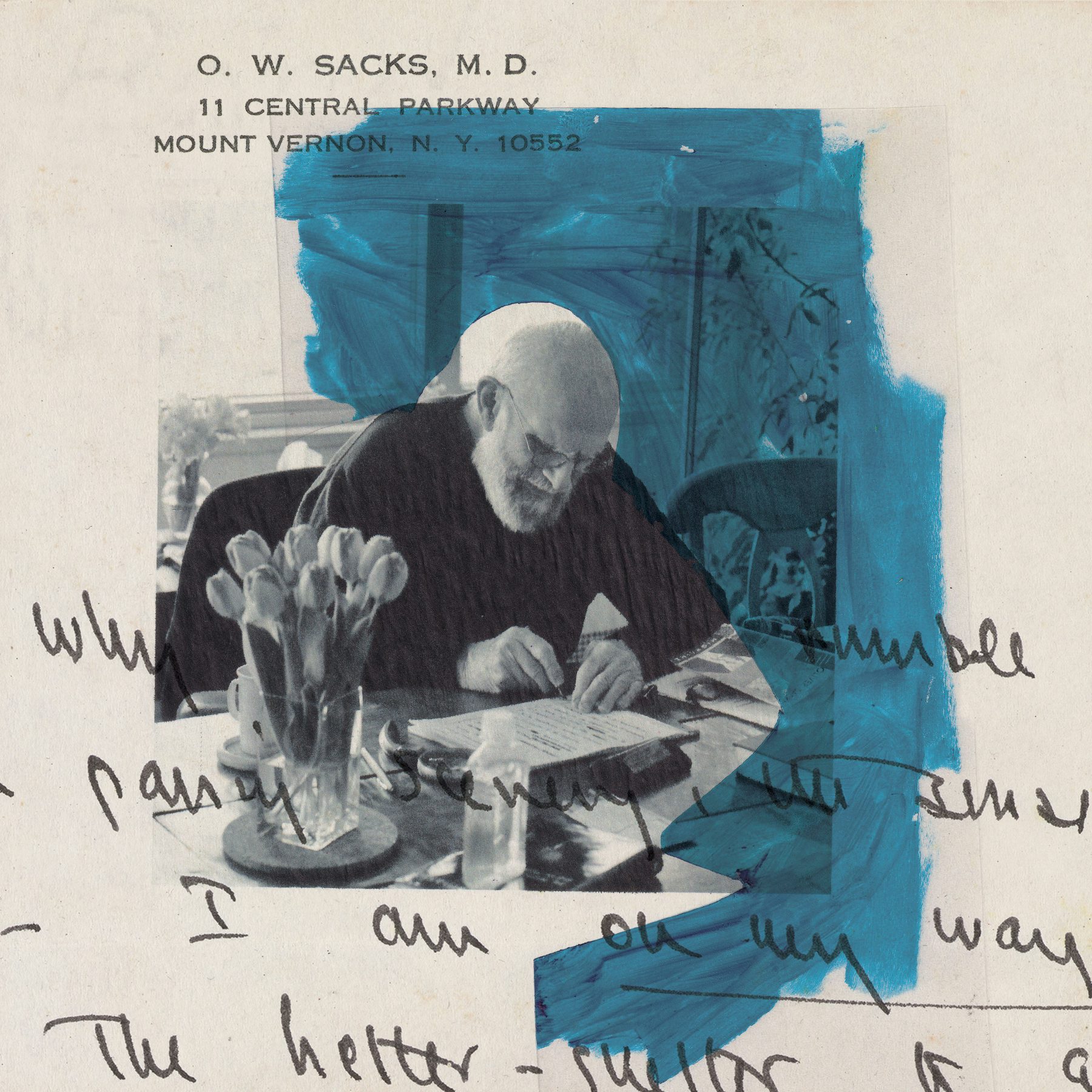 “At that time I was creating collaged postcards that I was exchanging with my father,” she says. “Using vintage postcards, I would create a minimal visual intervention before popping them in the mail to my dad. Frank saw the ongoing series on Instagram and I’m grateful that he could envision the potential for my work to fit within an editorial context. When he reached out regarding the commission, I was absolutely ecstatic about the opportunity but also quite intimidated.”