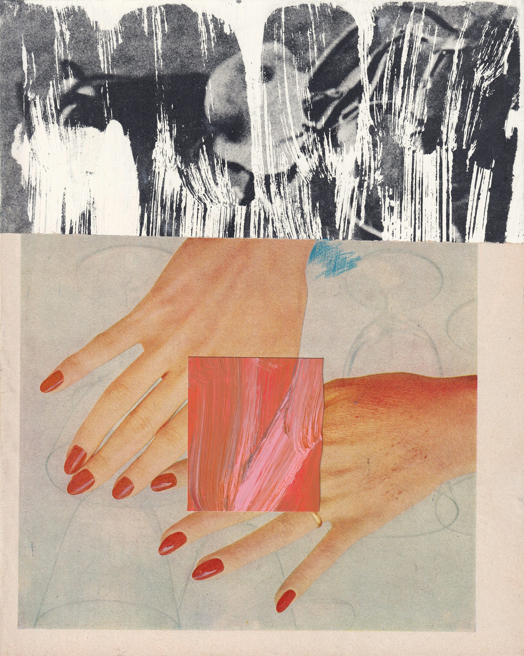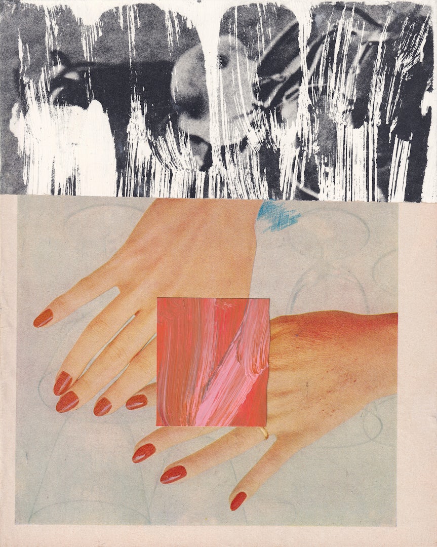 Despite its inclusion of disparate sources, collage is often a minimalist medium, with Saba’s creative decision-making based on “how [I] can communicate something powerfully, without stripping it of its depth or complexity, [while] making only the necessary visual moves. I’m really not aiming to illustrate a written piece or illustrate a narrative,” she says. “I’m looking to get to the essence of the feeling of it and to then conjure that in the artwork. This typically results in work that is somewhere between being figurative and abstract.”