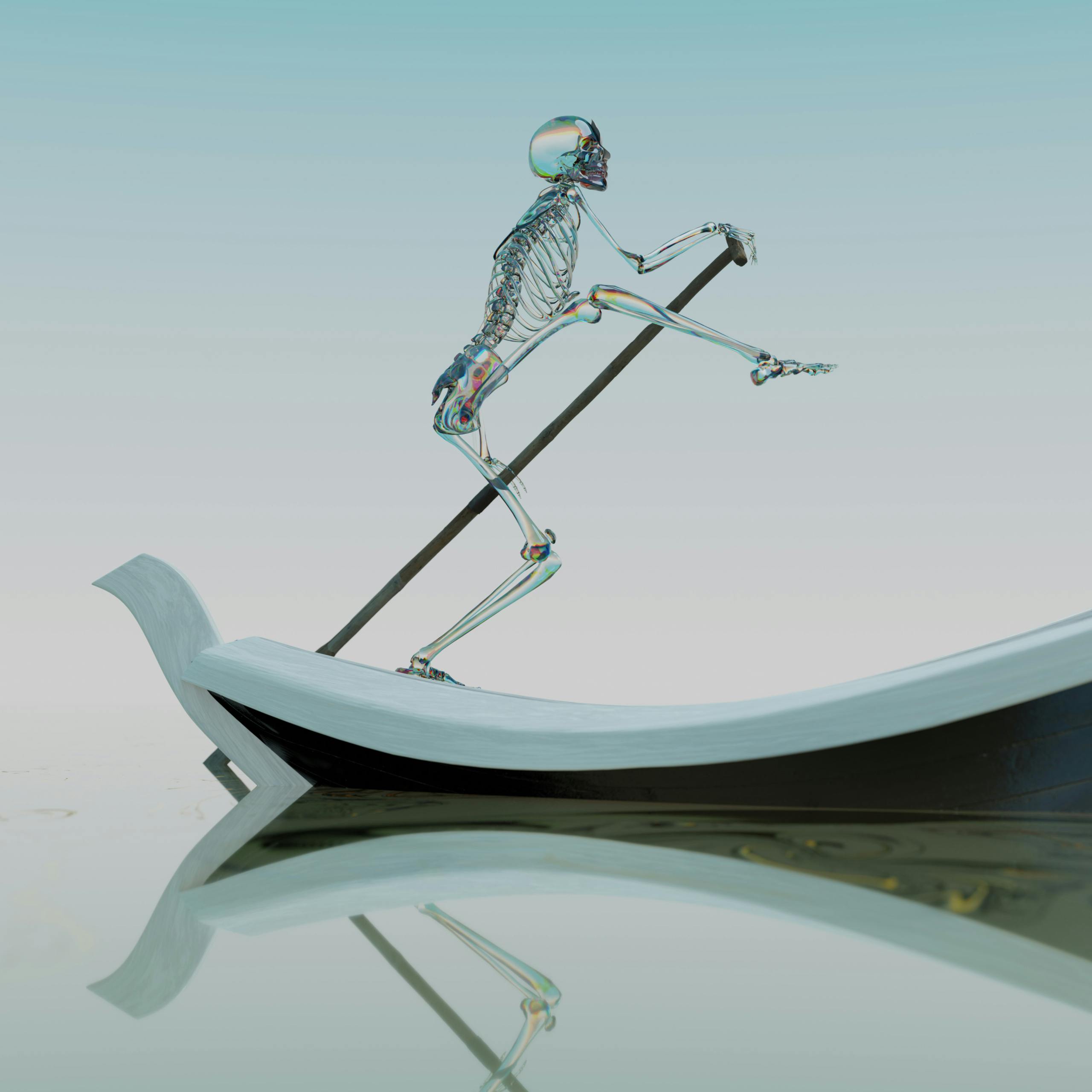 The latter saw Zawada creating characters in Blender before transposing them into the Unreal game engine to arrange environments, lighting and camera movements. Final segment, The Spirit, features visuals of a skeletal figure dancing on a rowing boat and was originally conceived with the idea of working with motion capture and live choreography. Zawada instead opted for a simple animation evocative of a late-90s video game cutscene.