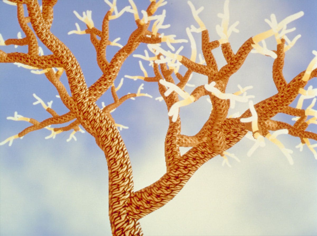 Given her fascination with human motion, dance was a rich source of inspiration for the artist from the outset. In 1982, she worked with choreographer Twyla Tharp on The Catherine Wheel, a feature-length dance film with music by David Byrne, which sees a computer-generated character play the role of St Catherine. Broadcast on the BBC and across Europe on PBS, it marked her first steps from the hidden world of computer science labs into mainstream culture.