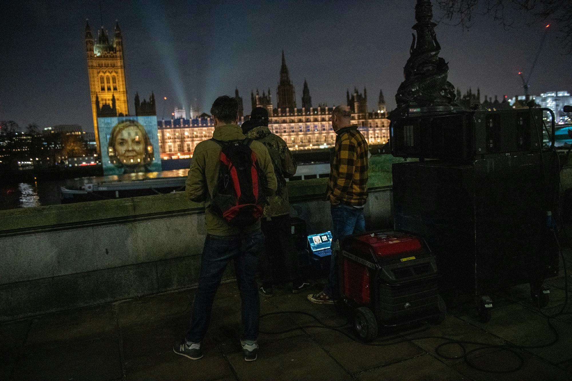 Whether it’s projecting an image of Boris Johnson onto Buckingham Palace hours before he arrived to be invited by the late Queen to form a government or painting ‘We Stand With the NHS’ on the lawn outside Glastonbury’s Pyramid Stage, Led By Donkeys often have to work fast. “It’s worth saying it’s not just four of us,” explains Knowles. “We tend to generate ideas, but we’ve got a great network of collaborators we work with on different projects – videographers, editors and logistics experts who help us pull these things together quickly. People who say yes to stuff and make things happen.”