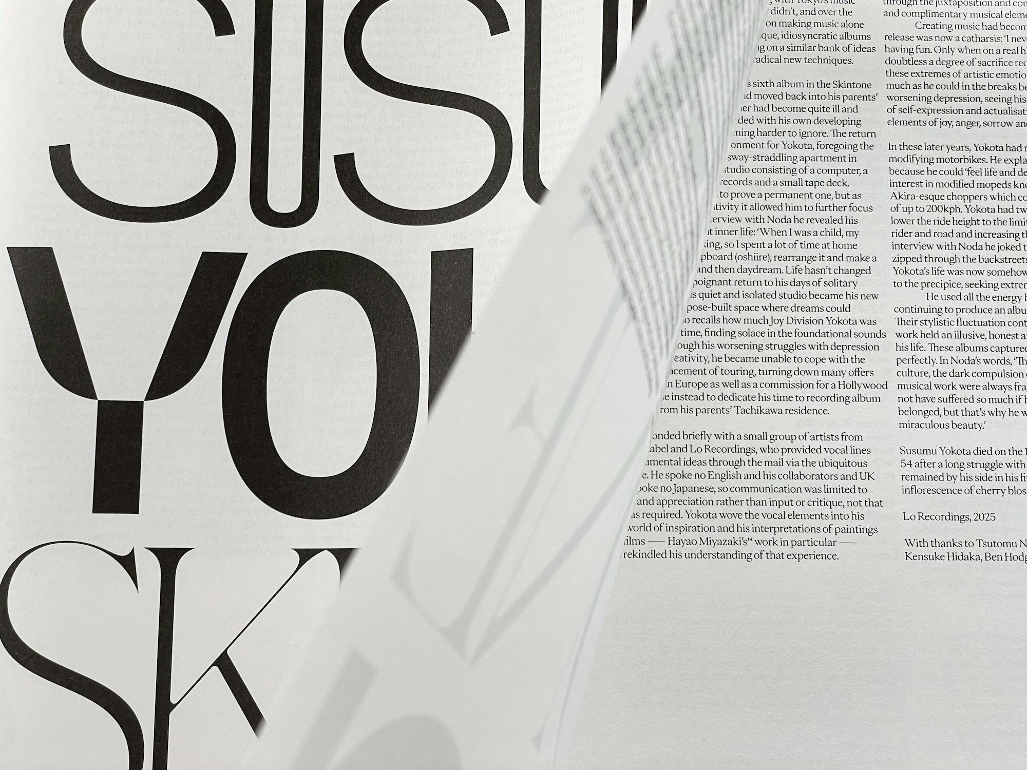 Lo Recordings also worked with Anglo-Scandinavian design studio Non-Format, who specialise in music publishing, on this project. Having previously designed a poster for Yokota’s posthumously-released 2019 album Cloud Hidden, the studio was keen once again to complement the legendary musician’s creative talent with equally beautiful design.
