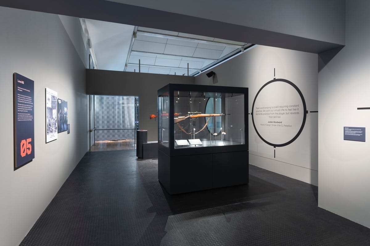 The exhibition even includes a real-life sniper rifle which developer Rebellion – a sponsor of the show – photographed and recreated for its Sniper Elite series of games. Visitors are encouraged to squirm, with a pair of cosmetic prosthetics placed next to the gun as a reminder of the damage weapons inflict in the real world. “We wanted to counterpoint and highlight that tension between the real-life impact on somebody who would have suffered the same sorts of injuries, and what that would have meant in terms of their recovery and longer term psychological impact – to emphasise the tensions between the virtual and the real,” says Cooper.
