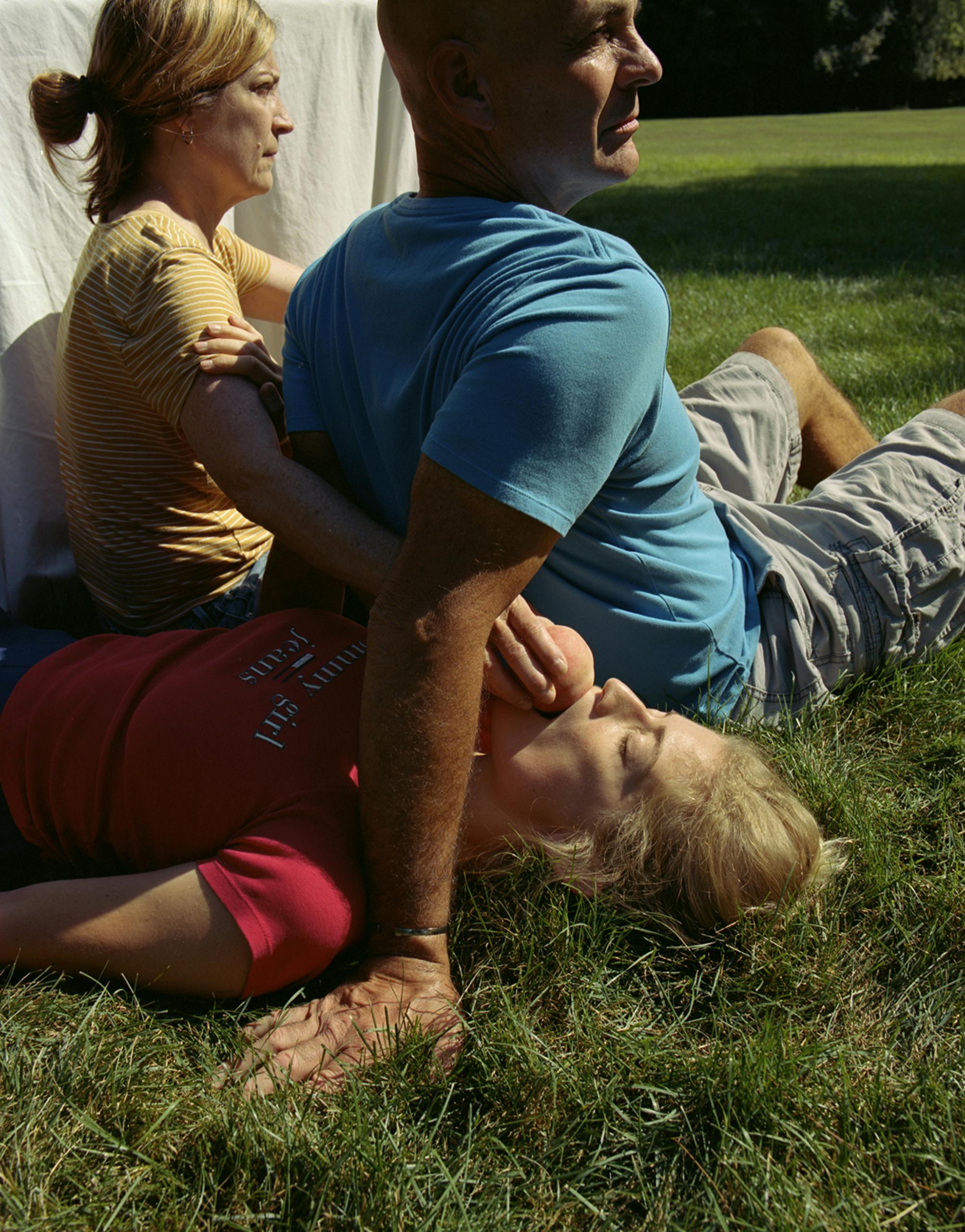 The series – which breaks with convention in both visual and narrative strategy – manifests as a psychological experiment born from constructed scenes that attempt to locate the edges of what’s comfortable. “As an only child, I’ve always had an extremely close bond with my mother. We are more like best friends than the typical dynamic. Because of this, it was slightly easier for me to ask her things. With my stepfather and father, it was different. I could tell they were uncomfortable with some things I asked them to do but were perhaps afraid to say no. Maybe saying no gave the taboo thoughts or discomfort more power.”