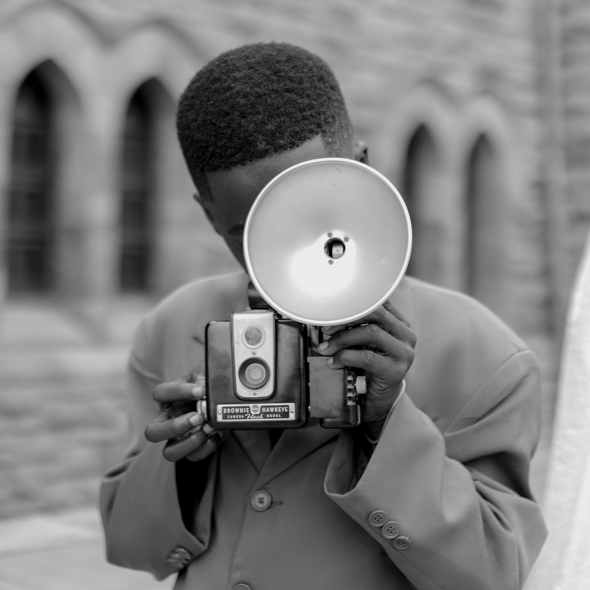 His “bridge” to the past is multidirectional. Artists and documentarians who were especially prolific in the 20th century have informed his practice: Malick Sidibé, Seydou Keïta, James Barnor, Roy DeCarava, Carrie Mae Weems. Yet it’s not just about being inspired, he says. It’s about creating a dialogue with their images and examining the conditions around how and why they were made.