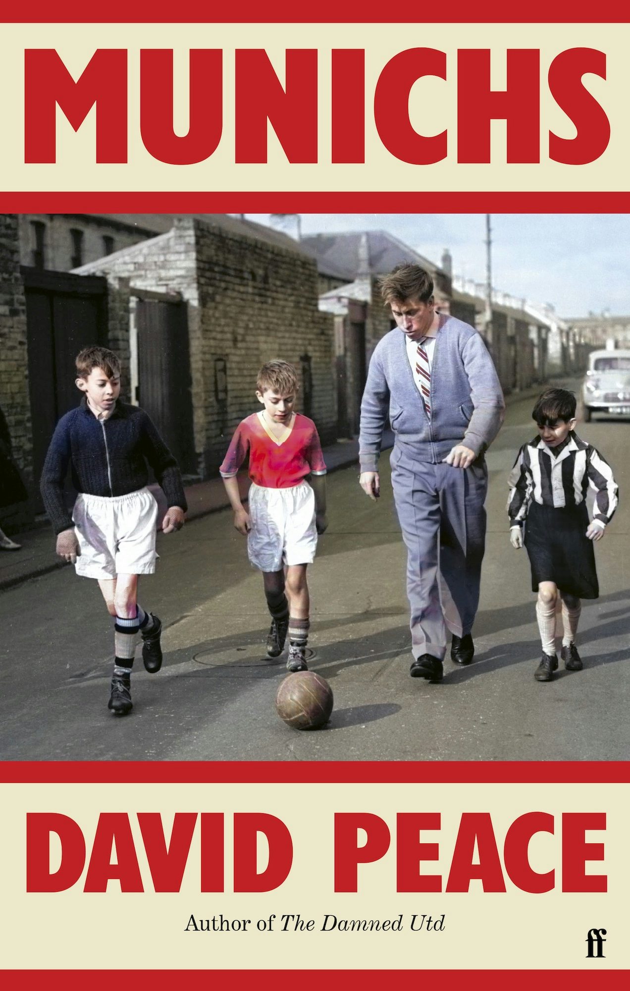 This sensitively handled cover works really well for David Peace’s dramatisation of the Munich air disaster of February 1958, where eight of the Manchester United team, alongside several journalists and club officials, were killed when their plane crashed on take-off. The poignant photograph, taken sometime after the tragic event, shows Bobby Charlton with some young footballers in a back lane in Ashington, Northumberland where he lived.