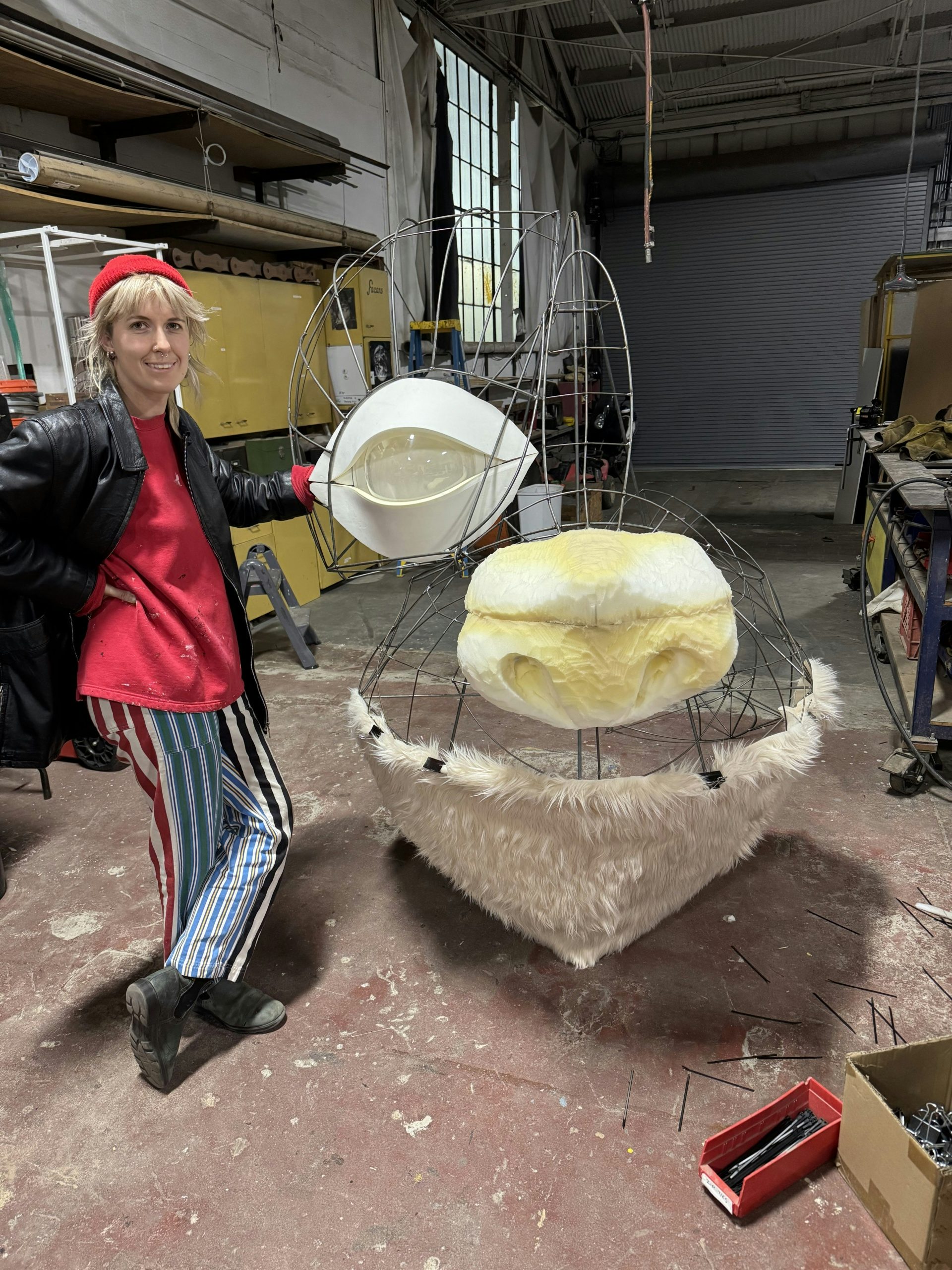 Photographed by Allegra Messina, the head (nicknamed Grandma) is a seven-foot tall puppet that was fabricated by hand by Miles Robinson at Sara Paquette’s Strong Friend Inc studio in Los Angeles (assisted by Emma Bradford and with creative production by Milena Gorum).
