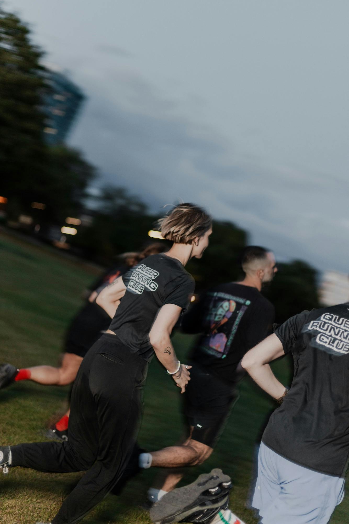 After creating T-shirts for Queer Running Club (QRC), founder Kole Fulmine and designer Hannah Dickins began to see people wearing them – not on their way to the park or a club run, but “just walking around doing their groceries”, Dickins says. As something that previously “just wouldn’t happen”, the pair started to identify a shift to sports clubs edging towards being “a bit cooler”. Spotting the T-shirt around east London seemed to show that membership was “something they are really proud of”, says Fulmine.