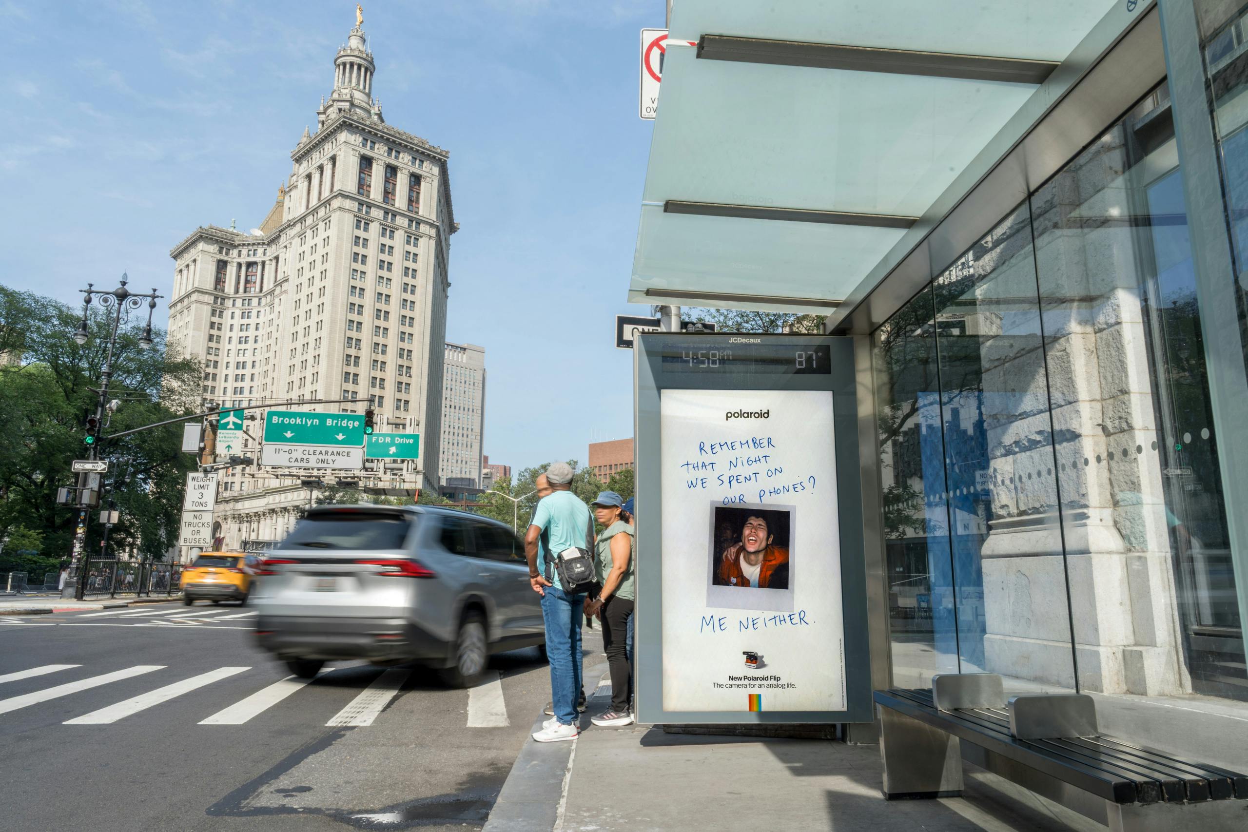 The campaign has been posted in high-traffic areas across London and New York. It combines Polaroids with taglines such as ‘No one on their deathbed ever said: I wish I’d spent more time on my phone’ or ‘Real stories. Not stories & reels’.
