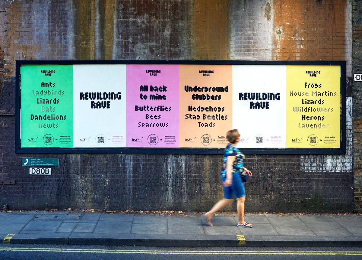 As far as Howie is concerned, creating a more positive public realm isn’t down to signage alone. He says traditional wayfinding needs to work in partnership with a broader kind of creativity that improves the world around us. For example, Fieldwork Facility installing brainteasers under London’s Hammersmith Flyover, or creating ‘rewilding rave’ posters to support biodiversity in the area. F.R.A has also explored more unconventional forms of ‘wayfinding’, via concepts for hiding a full symphony orchestra behind a hoarding, or placing movie props in building sites for people to peer in at. “How nice if someone breaks routine and expresses curiosity – it’s a scarce resource, so [we should] give them something for it,” says Meyer.