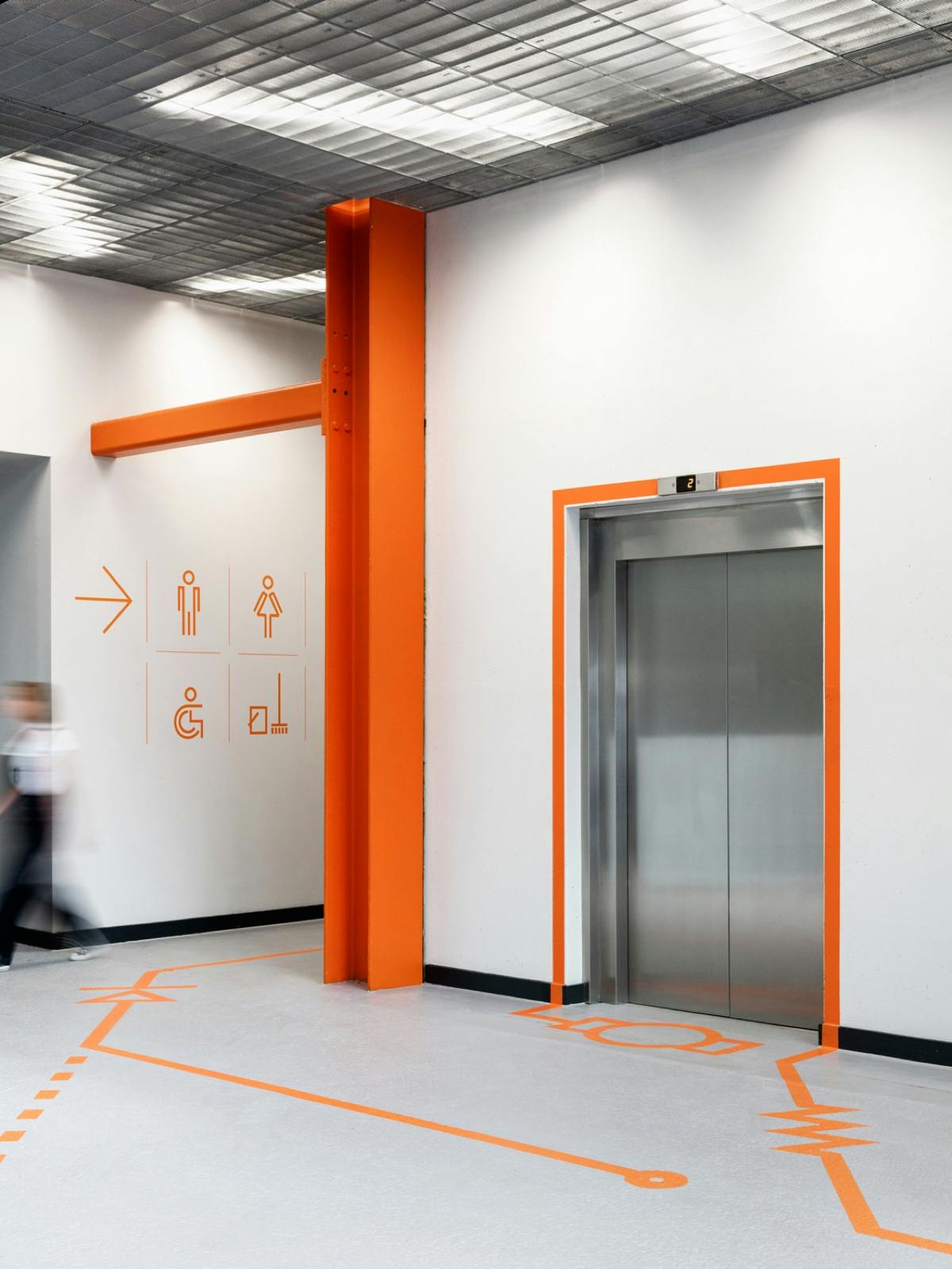 That playfulness doesn’t mean wayfinding doesn’t have to work hard, however. According to Stevenson it’s a balancing act, and people have to first trust and understand the signage before it can have fun. He believes designers can use landmarks to help push the boundaries, using large scale graphics or sculptural elements to help guide people. “That’s the place to be more expressive, and the backbone of wayfinding,” he explains. “Wayfinding shouldn’t be dull, but it’s more important that you get the flow of information – it’s a bit like a relay race, where one side hands you onto the next side and gets you to your destination.”