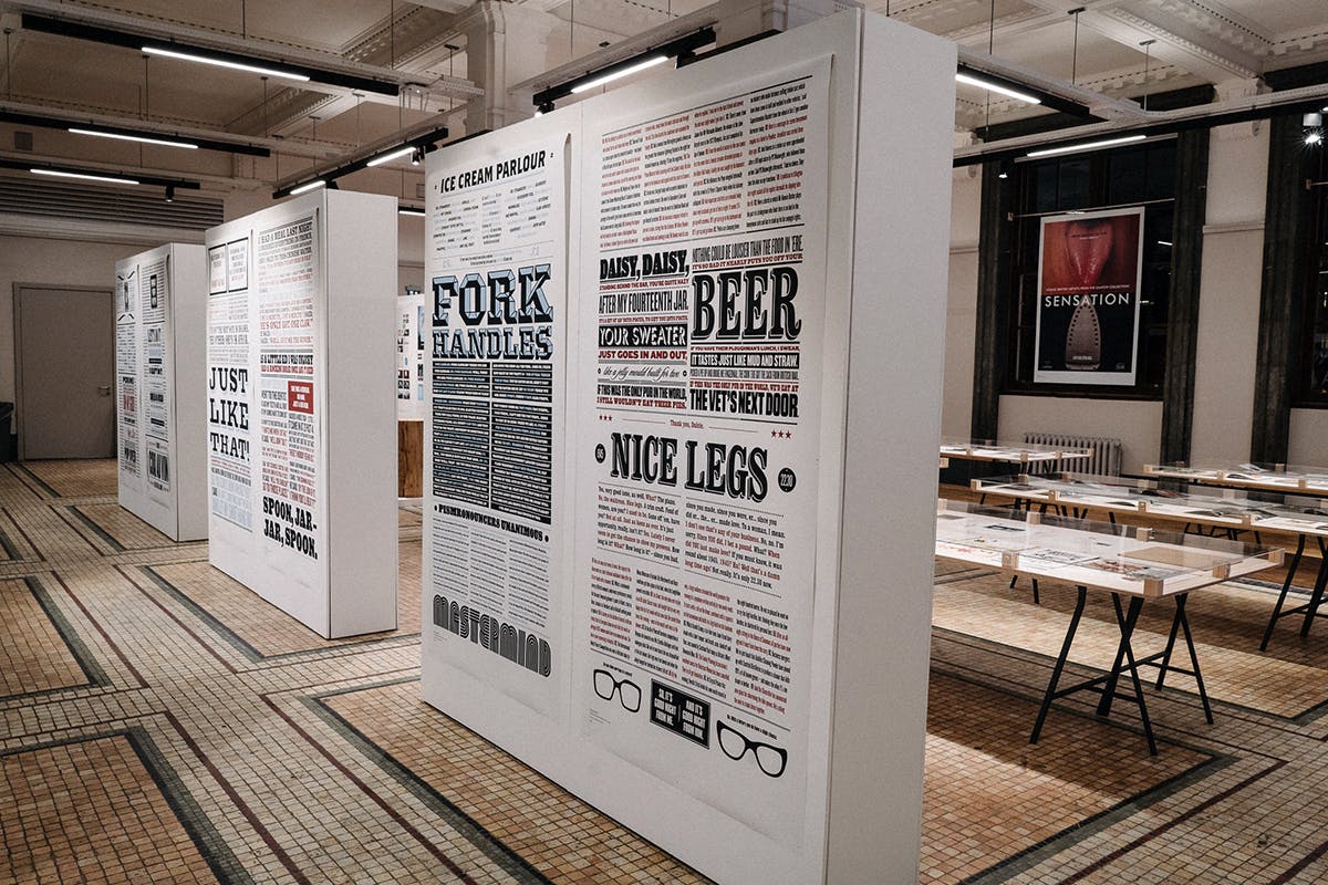 And although you can tell a lot about the pair from the work, the most interesting stories are told by the people who were there. Pam Bowman and Matt Edgar’s documentary [trailer shown above], on show as part of the exhibition and set for wider release next year, interviews friends and colleagues – including Jonathan Barnbrook, Howard Greenhalgh, and Rick Poynor, as well as Dumbar, Baines and Calvert – who are quite candidly revealing about the pair and their working process. Their ability to be challenging, combined with a generosity and brilliant sense of humour, made them different to other studios. “They’re the classic British double act,” says Barnbrook.