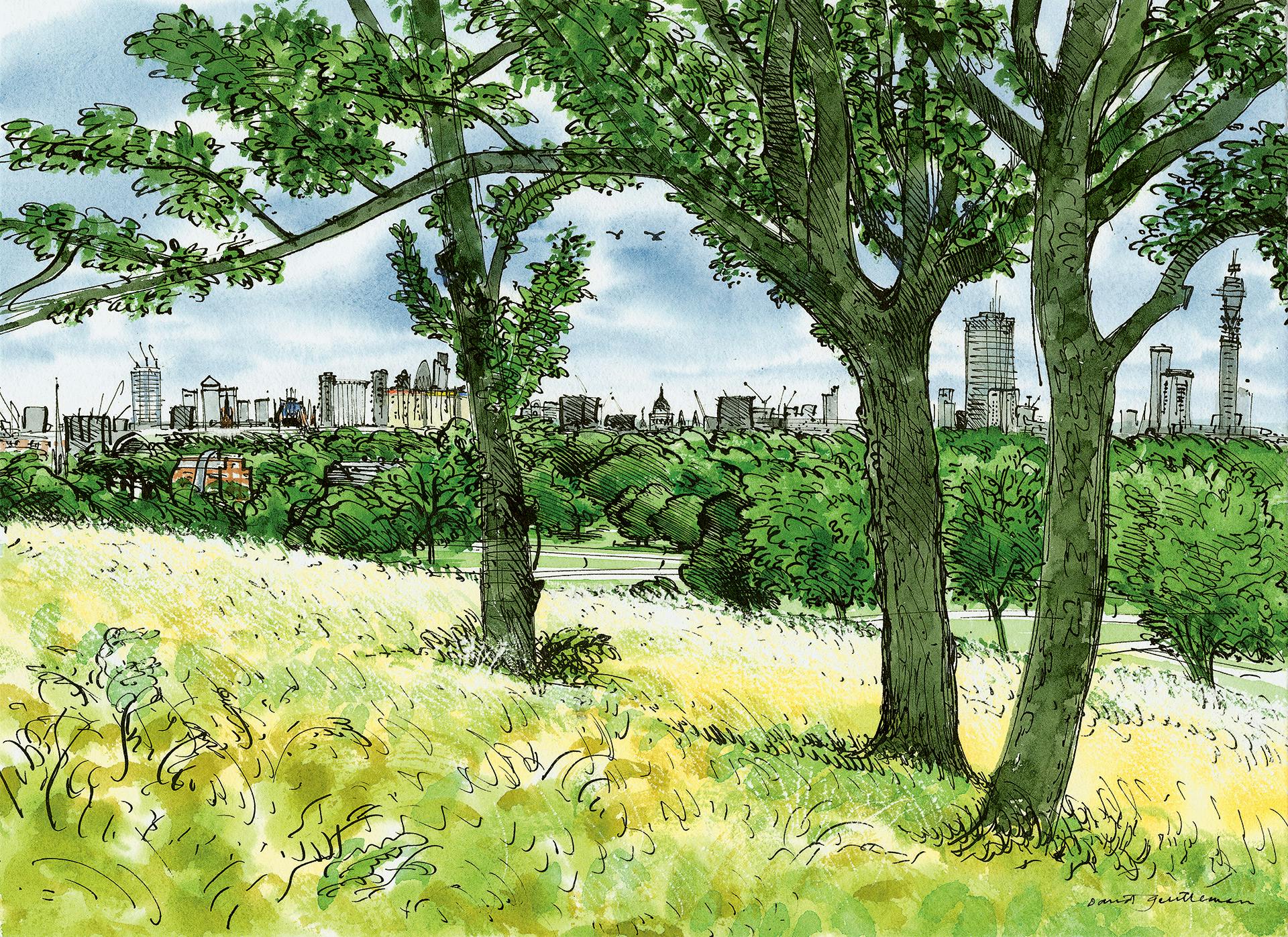 Taking inspiration from a transforming London Every time I walk up and down either side of the river, there’s always new stuff to look at. As I look down on London from Parliament Hill fields on the edge of the Heath, or from nearer to me from the top of Primrose Hill, it’s all changed but it’s as interesting as it ever was. I feel that when looking at the skyline, but also looking at the new buildings that are going up all the time. Sometimes I think I could do without them but often they’re interesting.