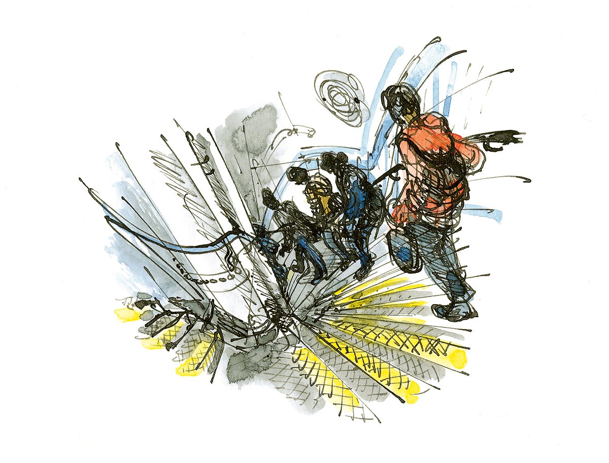 The other thing I wanted to do was [show] how the original Charing Cross had come about. The idea was drawing the people who would have worked on it, and then on the finished platform, the people waiting for the trains to come along. So [connecting] the two periods – the people building the station in the first place and seeing how equivalent they were to those workers beside them – that was the idea.