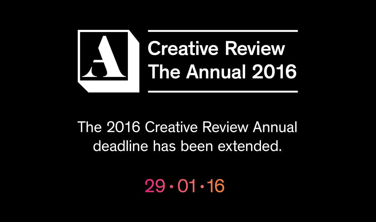 If you have not yet managed to send us your entries for the Creative Review Annual 2016, fear not. The deadline has been extended until January 29