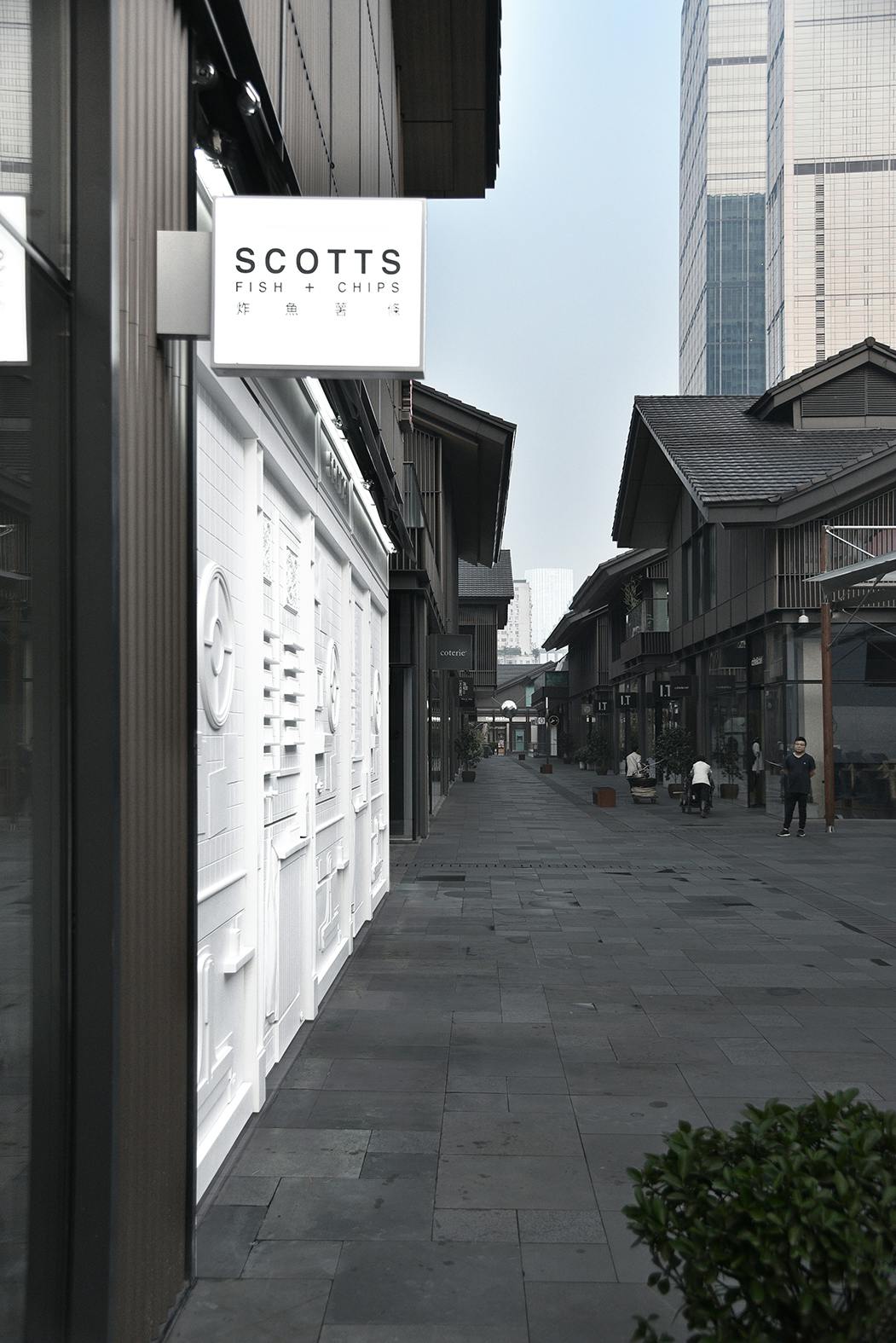 Unknown Works say Scotts Chengdu has been popular so far, which is no surprise, considering Chinese tourists flock to the original Scotts in Yorkshire, following President Xi –Jinping’s trip there in 2015. What is perhaps unexpected is how popular the space has been as the backdrop for art events and fashion shoots. “We wanted it to operate as an international outpost,” say Games Petrohilos and Hayes. “Some sort of exchange or discussion about food, British commerce and traditions, but also relating to different industries. So, it’s a nice, odd mix between fish and chips and fashion and shoe labels and the British consulate.”