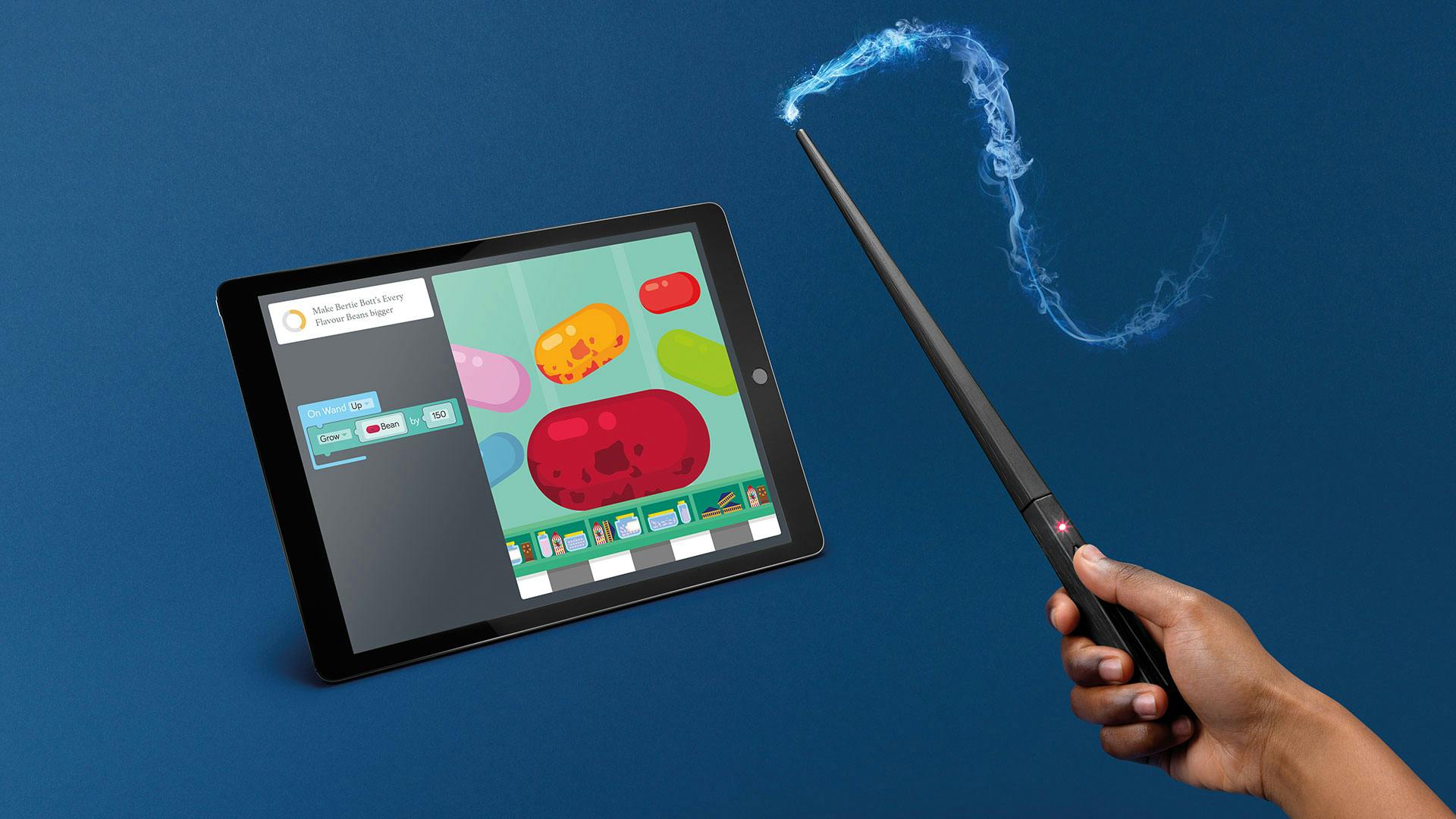 The Harry Potter Coding Kit – created in partnership with Warner Bros – lets users build a wireless wand that can be used with the Kano app to complete 70 Potter-themed challenges. Children can make feathers float and serpents slither, and learn about programming loops, variables and logic in the process.