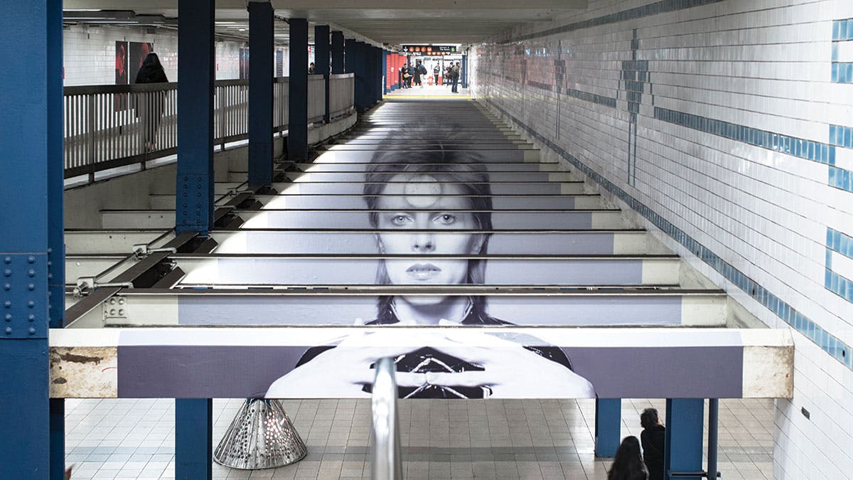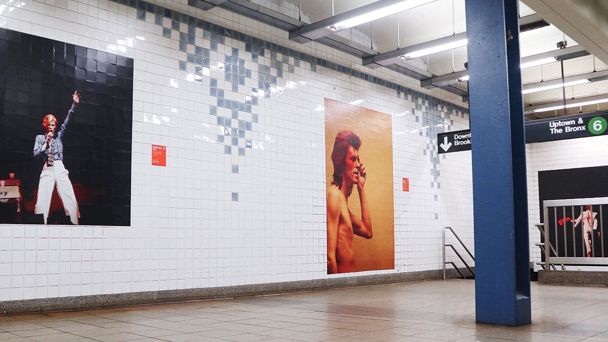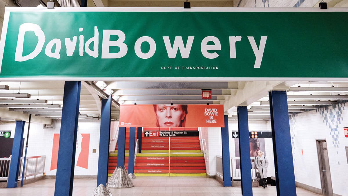 “The idea was to celebrate the way New York helped to shape him, and the artistic legacy of his relationship with the city,” says Spotify. To do this, the company took over Bowie’s local subway station, Broadway-Lafayette, and transformed it into a temporary museum exhibit with large-scale photographic installations and interactive displays.