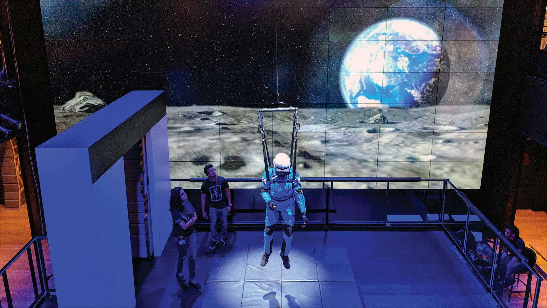 Once strapped in, users embark on a virtual lunar mission, planting a custom flag on the moon’s surface and peering into a crater before rushing to their vehicle to avoid a meteor shower. Alongside building the rig, Framestore worked with Iris to create the accompanying VR experience, drawing on NASA imagery to create lunar landscapes and vehicles using CGI.