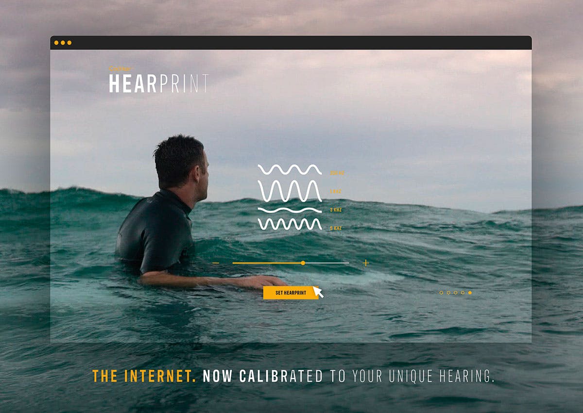 Cochlear Hearprint is an innovative Chrome plugin that calibrates online audio content to suit users’ hearing ability. Created to promote Cochlear’s implants, it was inspired by findings showing that 12% of Australians suffer hearing loss but take an average of seven years to seek help – a delay that can lead to depression and social isolation.