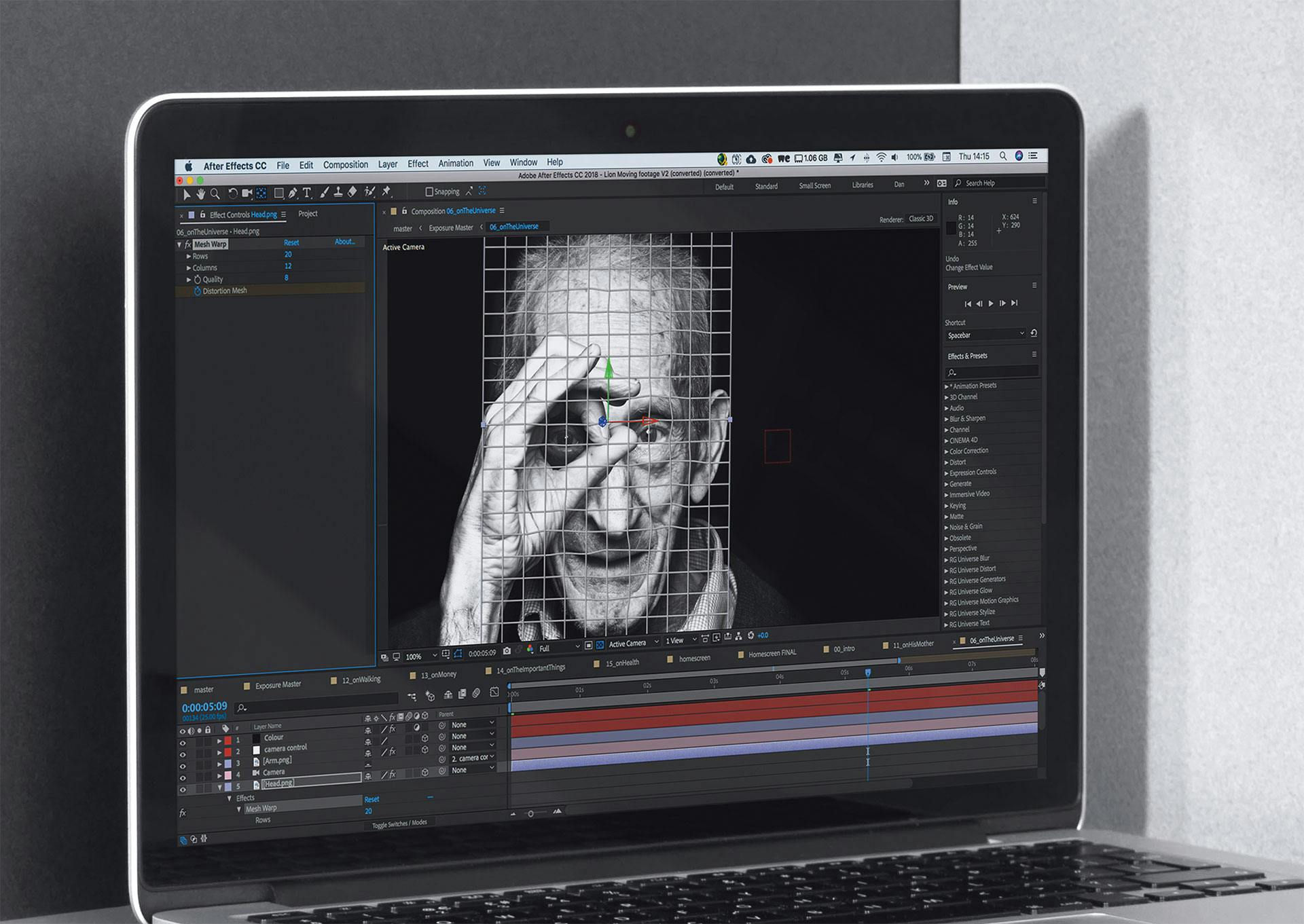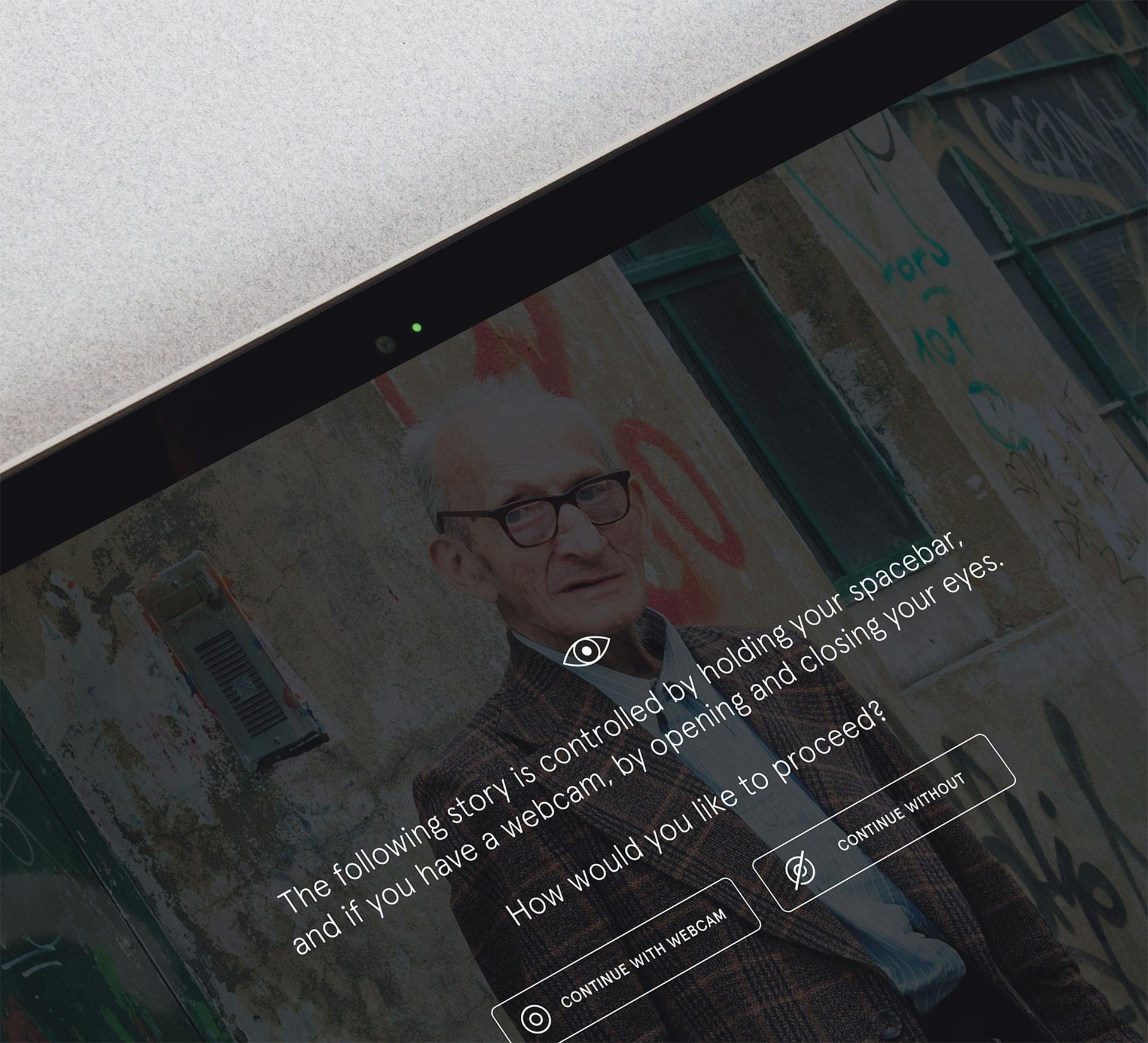 It follows a dual narrative. Each chapter is split into two parts, and can be navigated using a webcam and eye-tracking technology. Closing the eyes takes the user into Markovitch’s imagination, as he begins to share his musings from an eclectic mix of topics ranging from relationships to the universe.