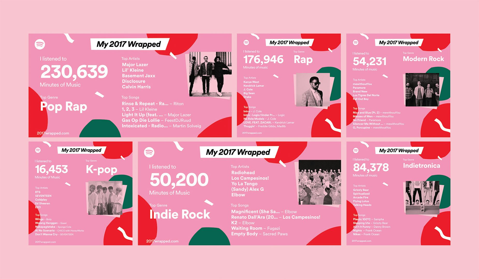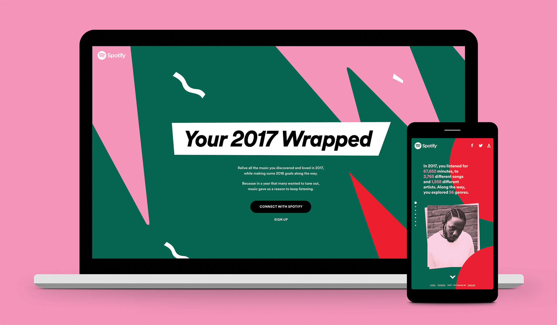 Entrant: Spotify. Chief Marketing Officer: Seth Farbman. VP, Brand and Creative: Jackie Jantos. Global Brand Director: Alexandra Tanguay. Global Creative Director: Alex Bodman. Global Brand Design Director: Rasmus Wangelin.Senior Art Director: Ellen Pai, Erik Herrstrom. Associate Brand Director: Christian Navarro. Senior Global Brand Manager: Payman Kassaie, Jonathan Chu. Global Director Integrated Production: Belinda Lopez. Senior Producer: Davis Najdecki. Global Director, Brand Strategy: Zach Pentel. Head of Marketing Strategy & Planning: Neal Gorevic. Global Consumer Marketing: Krista Scozzari, Antonia Moreland. Data Programme Manager: Sara Kayden. Data Science: Gordon Silvera, Gabriel Duncan. Production Partner: Active Theory.Managing Director: Nick Mountford. Creative Director: Andy Thealander. Interactive Director: Michael Anthony. Technical Director: Mike Chang. Senior Producer: Tara Conlin. Interactive Developer: Alex Bergin. Backend Developer: Giuseppe Rodriguez.