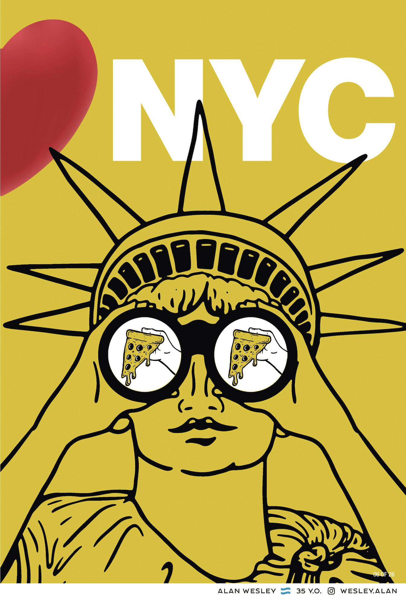 There is also a link to the origin story of Glaser’s logo, which was conceived in the 1970s during a period of particular economic and social decline in the city as part of a campaign to raise spirits and lift tourism. Glaser was commissioned to come up with a logo for a campaign conceived by ad agency Wells Rich Greene, which centred on the slogan I Love New York.